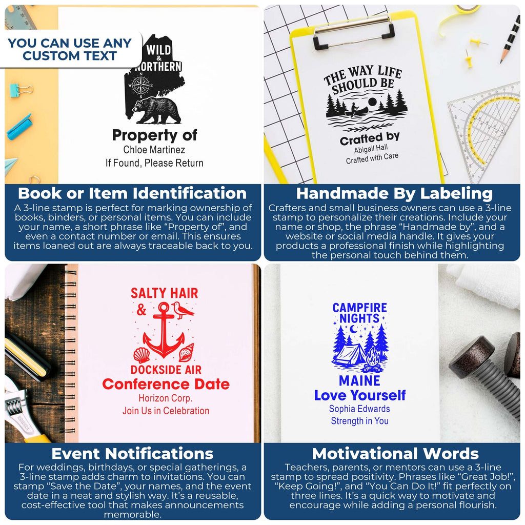 Acadia Coastal Charm Personalized Monogram Rubber Stamp and Slim Pre-Inked Option Highlights and Features