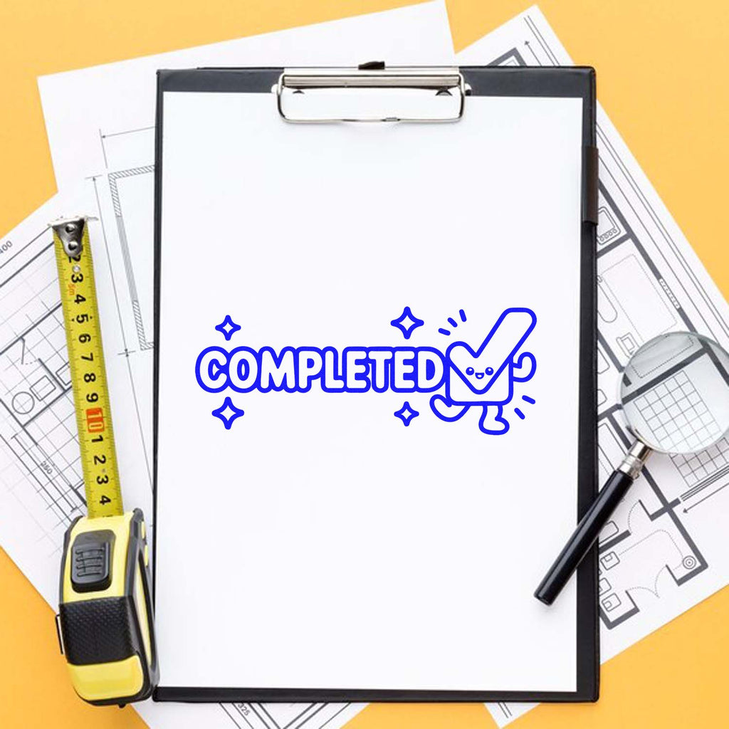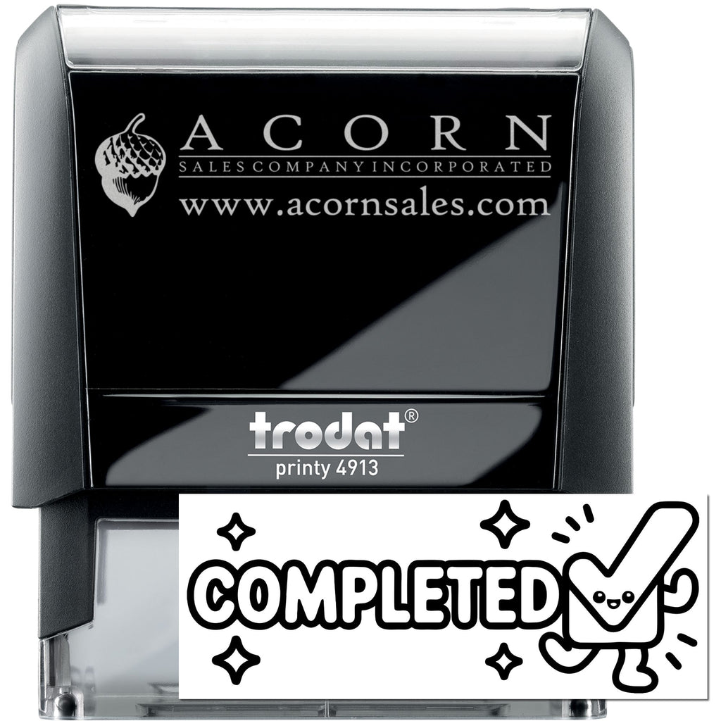 All set for success—meet the Adorable “COMPLETED” Self-Inking Stamp that turns everyday paperwork into a satisfying finish line. With bold, rounded lettering and a smiling checkmark character surrounded by celebratory sparkles, every press delivers a clear, confident message: done, verified, processed.