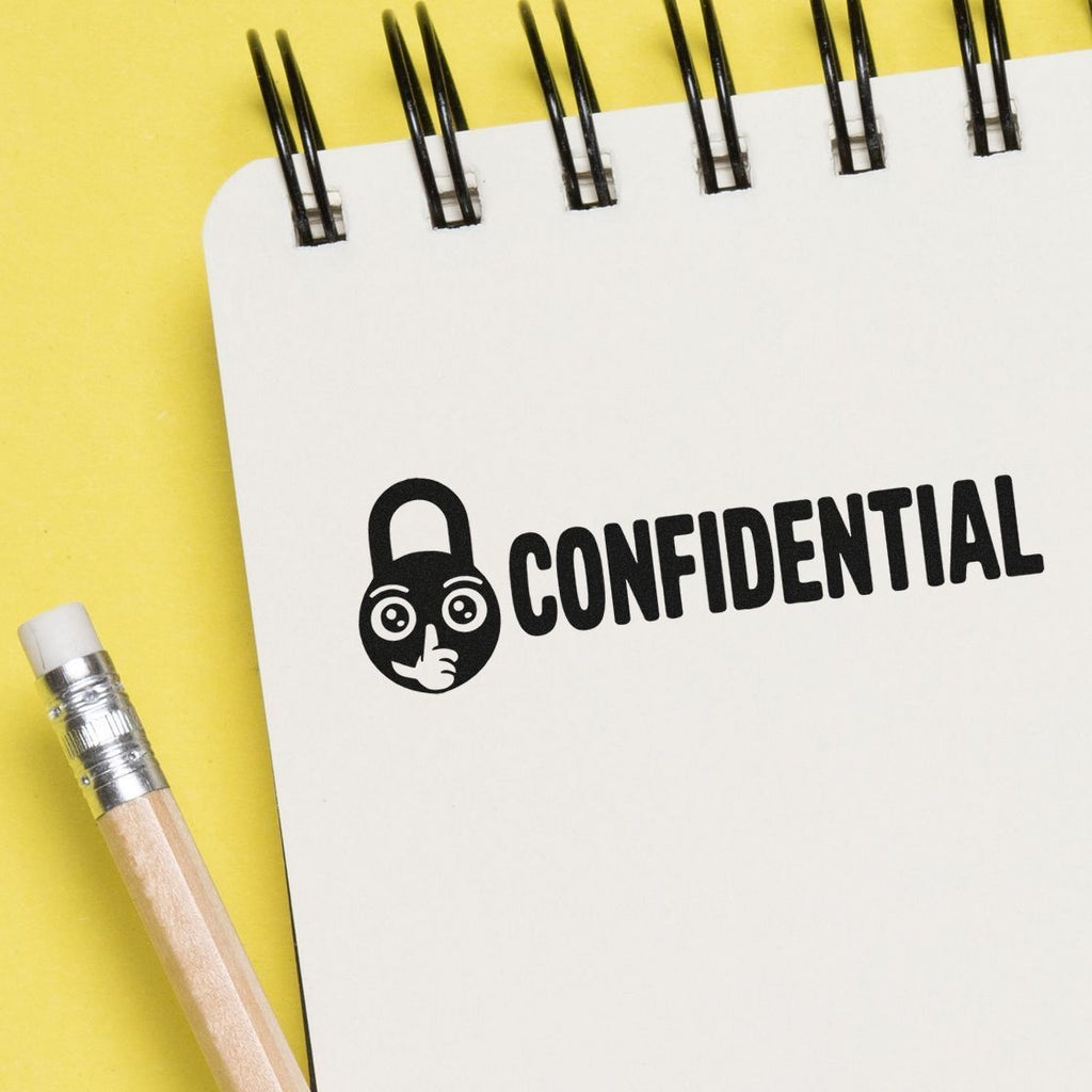 Glam up your paperwork while keeping sensitive details safely under wraps with this adorable Confidential Self-Inking Rubber Stamp—serious message, charming style, instantly clear. The padlock-face icon with big eyes and a “shh” finger pairs perfectly with bold CONFIDENTIAL lettering for a label that’s impossible to miss.