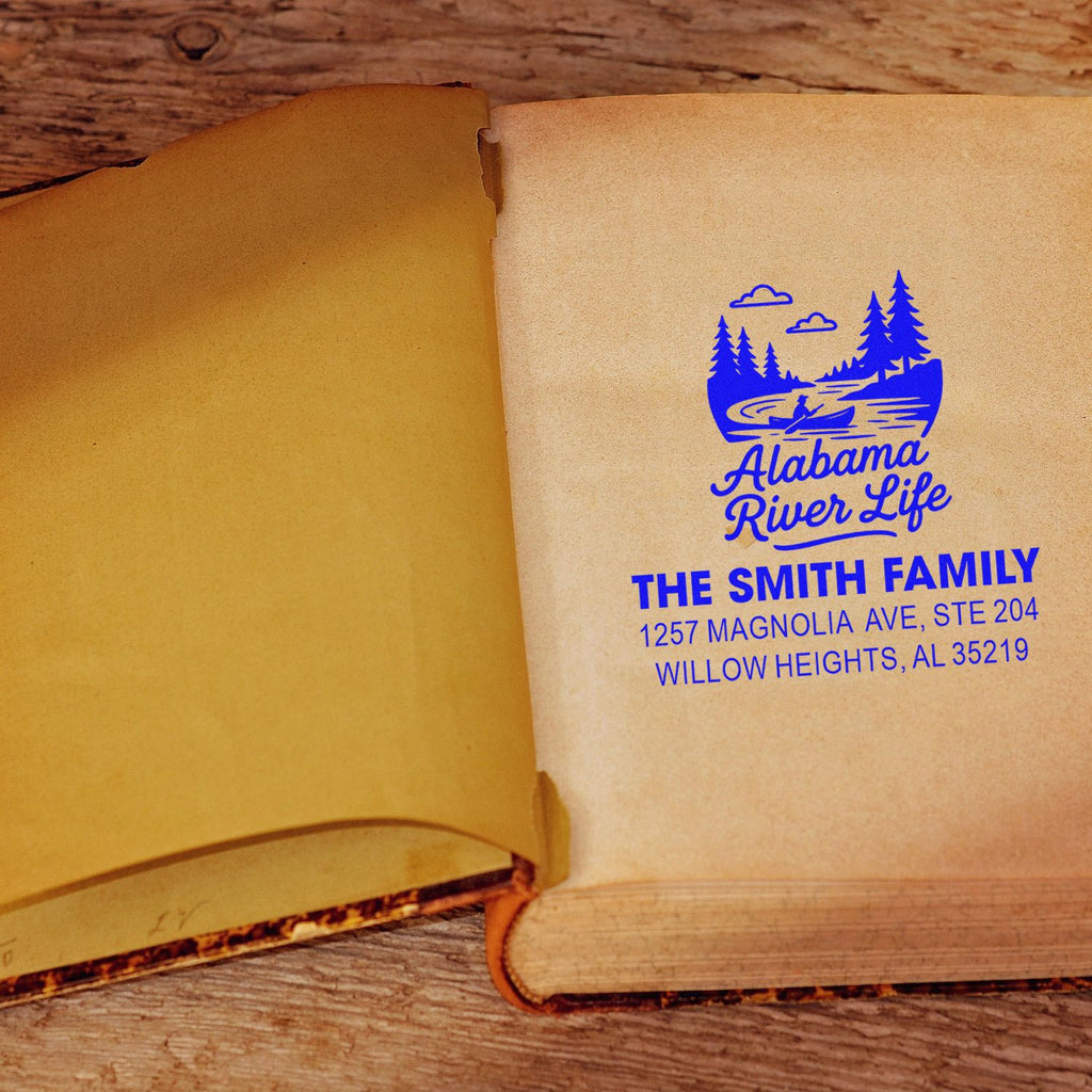 Alabama River Adventure Heritage Personalized Rubber Pre-Inked Stamp Highlights and Features