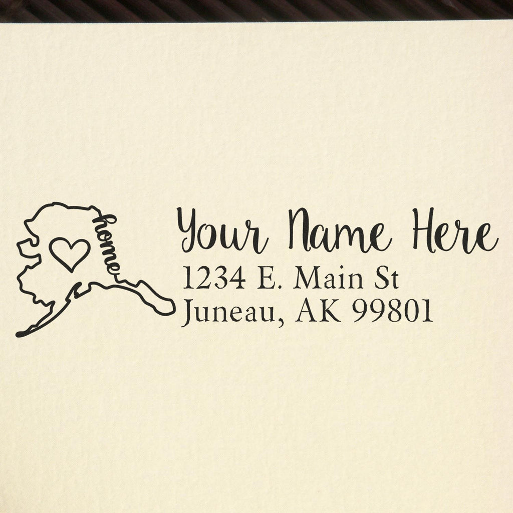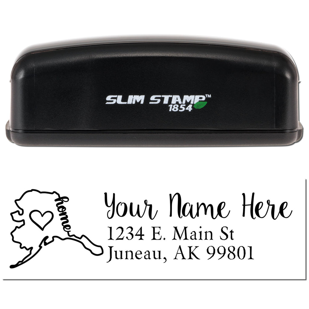 Radiate personality and polish with the Alaska Map Pre-Inked Slim Custom Return Address Stamp—a fast, stylish way to make every piece of mail feel instantly professional. Featuring a bold black silhouette of Alaska, this eye-catching custom stamp turns your return address into a standout detail while helping you address letters and packages faster, cleaner, and with beautiful consistency.