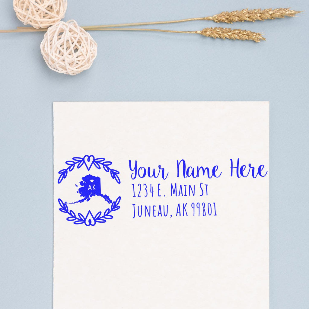 - Personalized: Featuring your custom Alaska return address design, this stamp gives every piece of outgoing mail a polished, one-of-a-kind finish that reflects your style and state pride.