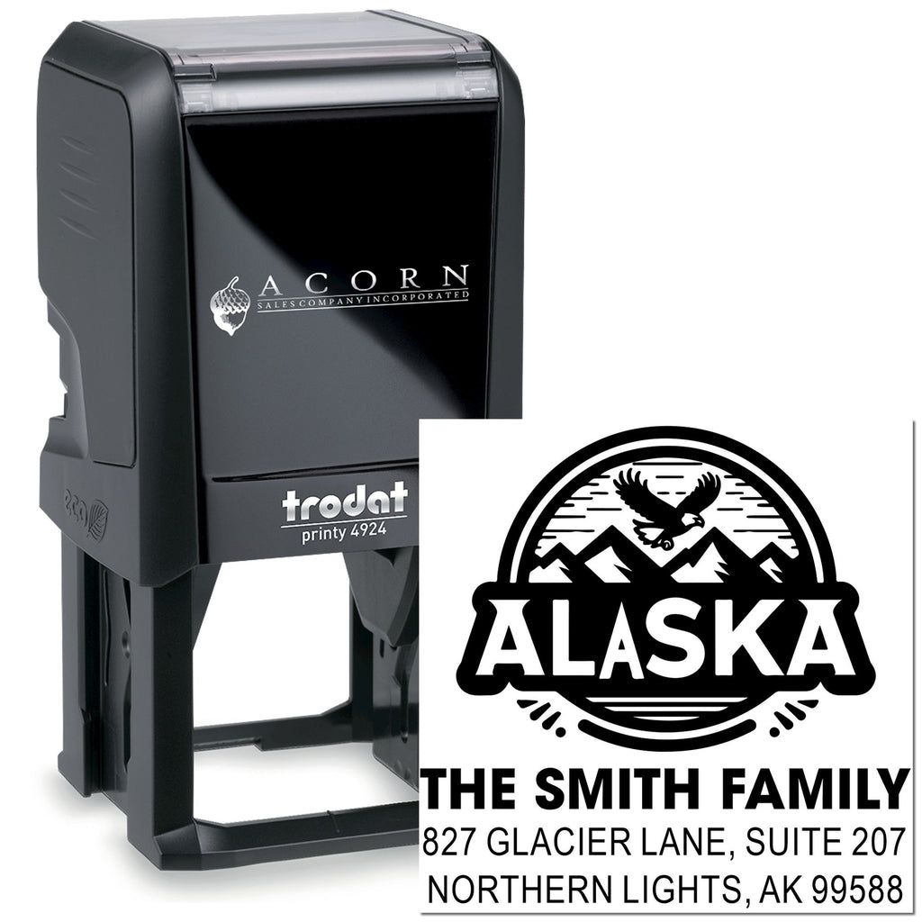 Venture into the wild with the Alaskan Adventure Badge Self-Inking Stamp, a compact 1-5/8" stamp that brings bold Alaska-inspired style to every project. Featuring a striking vintage-look design with a soaring eagle, rugged mountain peaks, and classic outdoor appeal, this self-inking stamp adds a memorable, professional touch to awards, crafts, journals, event materials, and more.