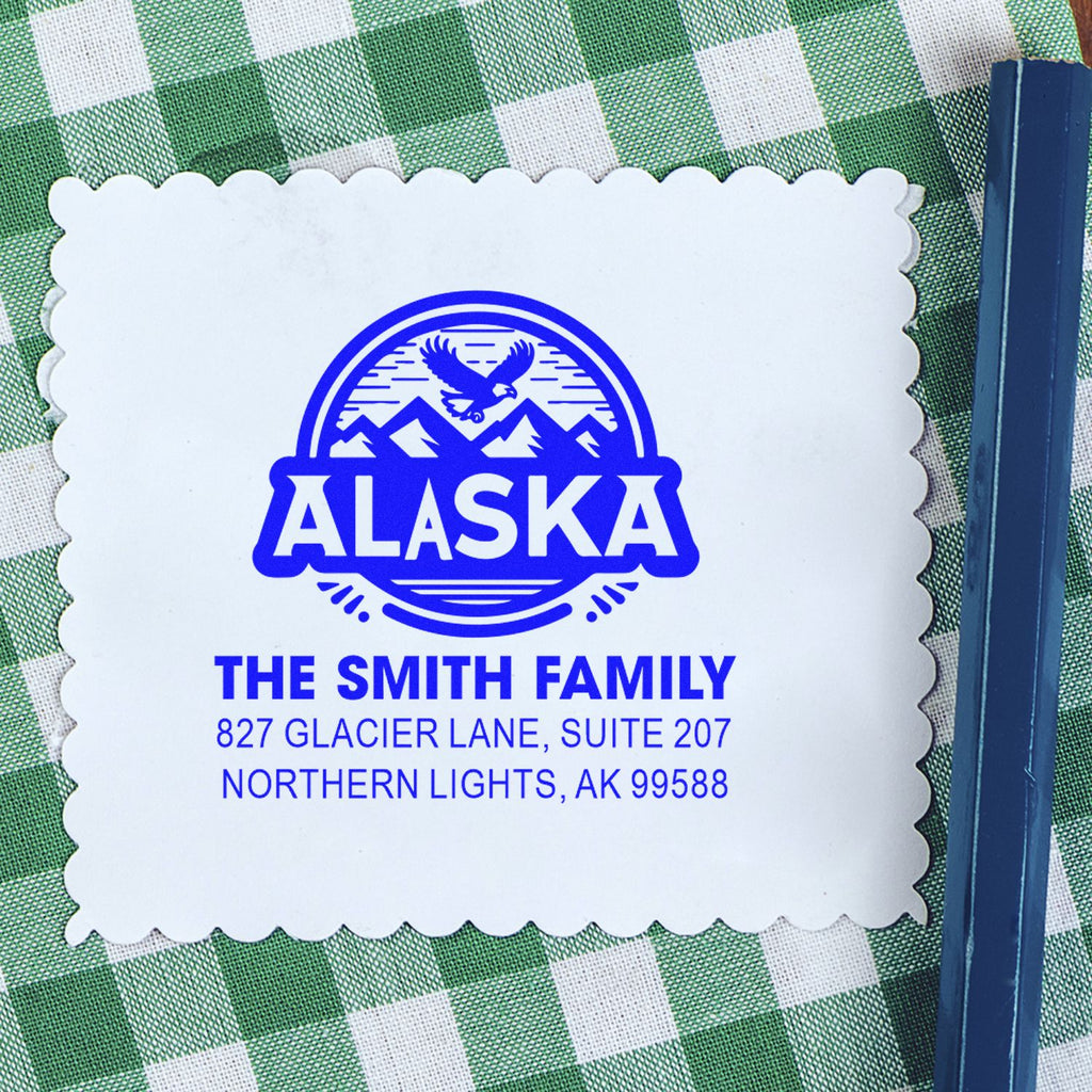 A favorite for teachers, scrapbookers, small business owners, and anyone who loves Alaska-inspired design, this custom stamp adds a unique outdoor touch to letters, event materials, travel notebooks, scrapbook pages, gift bags, and more. Order yours today and turn everyday stamping into a bold, adventure-filled statement.