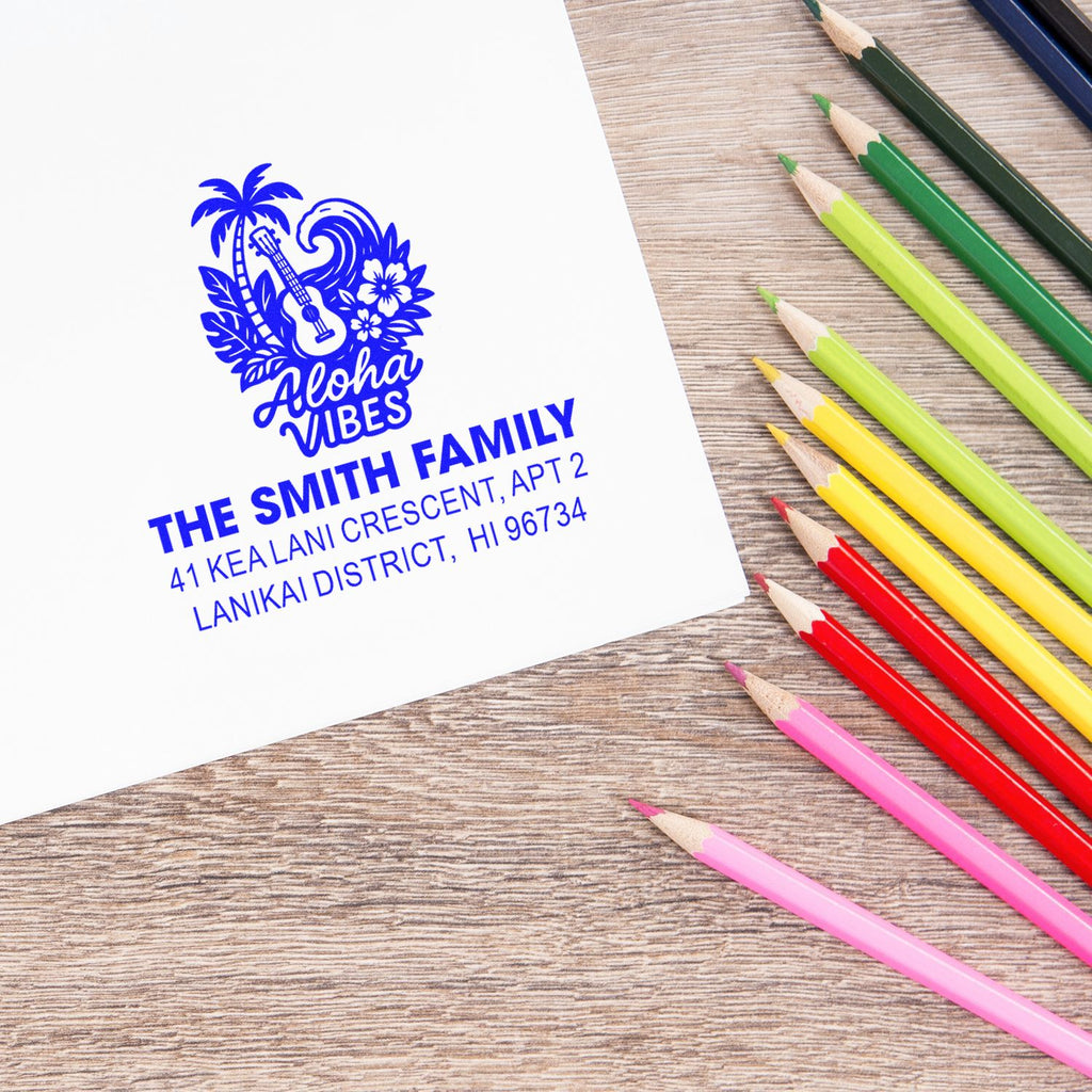 Aloha Vibes Design Self-Inking Stamp Highlights and Features