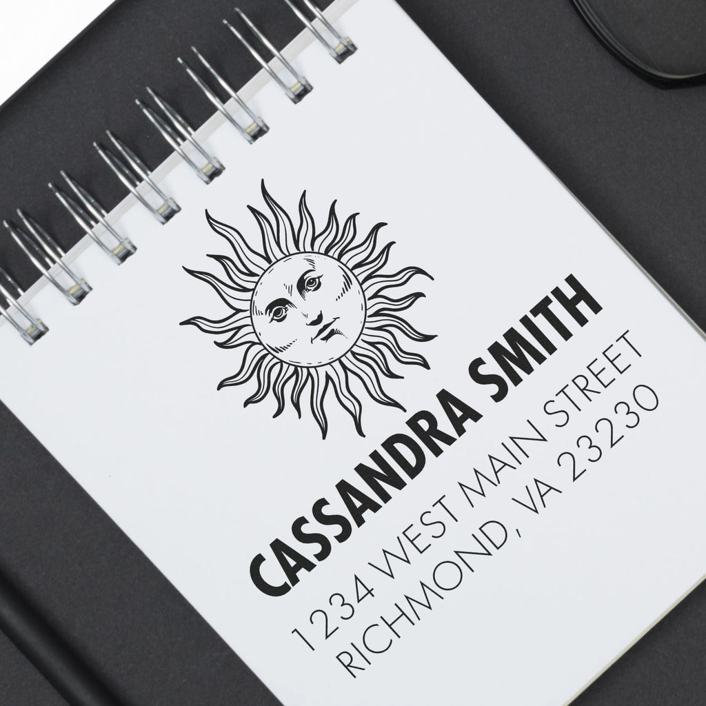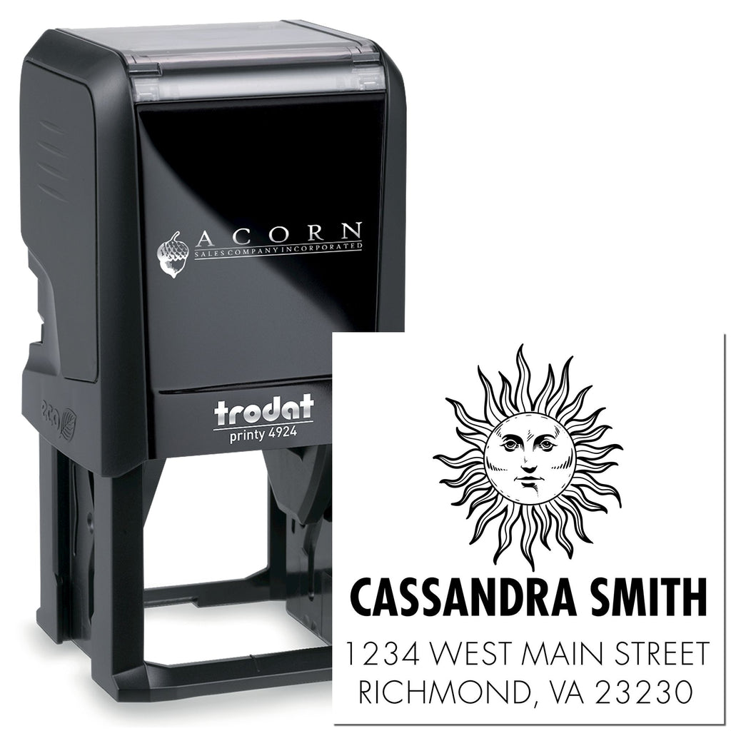 - ALPHA SUN STYLE: Designed with a centered Alpha Sun image in a compact 1-5/8" square format, this custom address stamp adds a bold, eye-catching touch to your return address that looks polished and memorable.