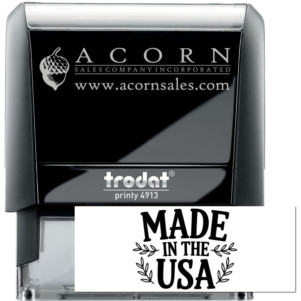 Polished, rustic, and ready to work—this American Rustic Charm Compliance Marking Self-Inking Stamp delivers a crisp “MADE IN THE USA” impression that looks like a timeless emblem, complete with leaf-branch framing for that elevated handcrafted feel.