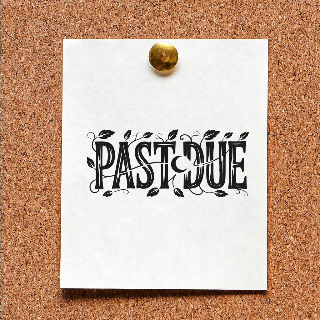 - Decorative Bold Impact: “PAST DUE” appears in big, bold, decorative lettering wrapped with vines and leaves in black—eye-catching enough to grab attention while keeping your documents neat and refined.