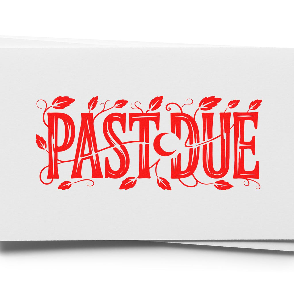 Designed in big, decorative “PAST DUE” lettering with elegant vines and leaves wrapping around the words, this stamp adds a distinctive astrology-inspired vibe while keeping your notice clear, professional, and impossible to miss on invoices, statements, and paperwork.