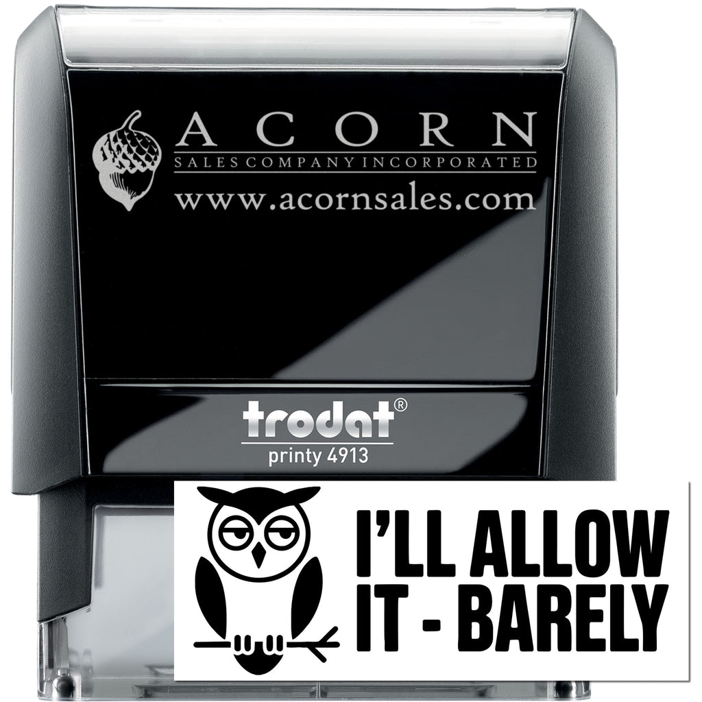 - Crisp Professionalism: Laser-engraved die creates sharp, consistent black-and-white detail—featuring the unimpressed owl on a branch and the bold line “I’ll allow it—barely.” for a polished, repeatable mark.