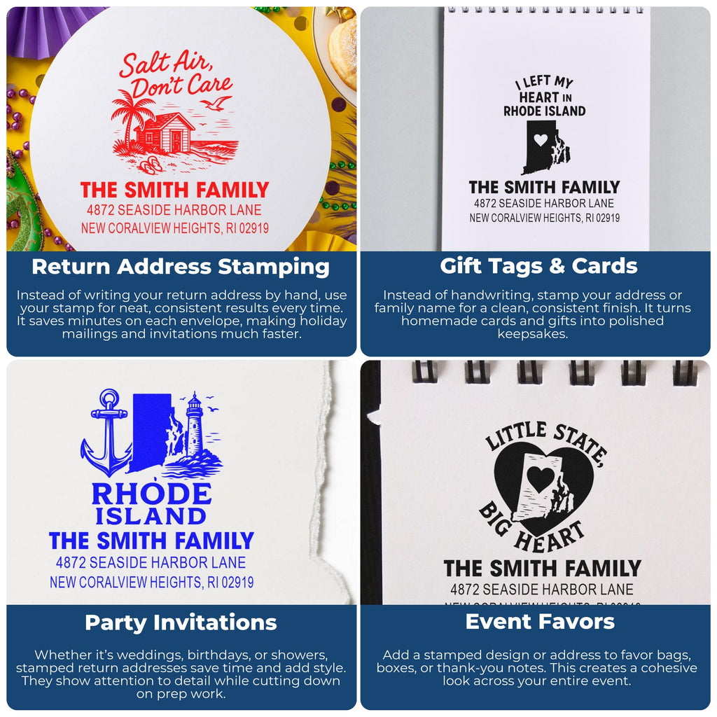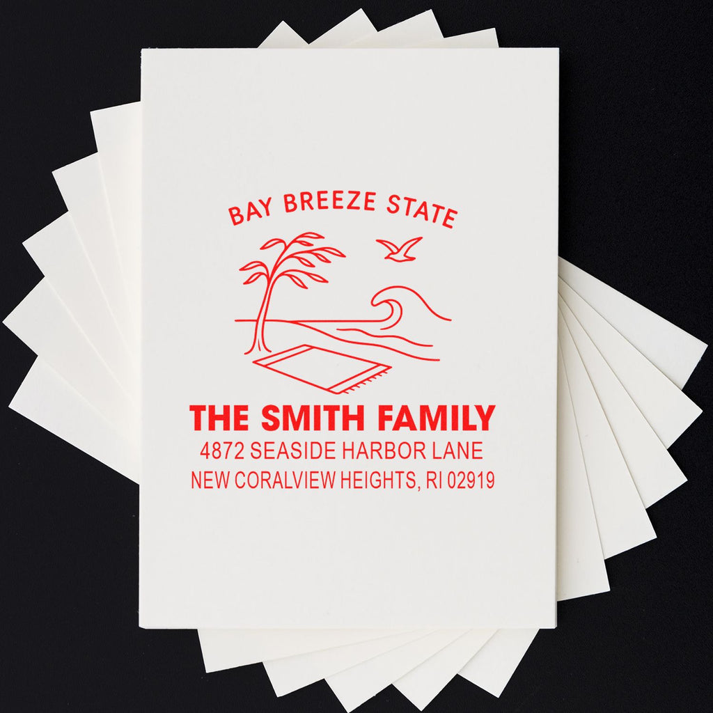 Bay Breeze Escape Personalized Square Pre-Inked Stamp Highlights and Features