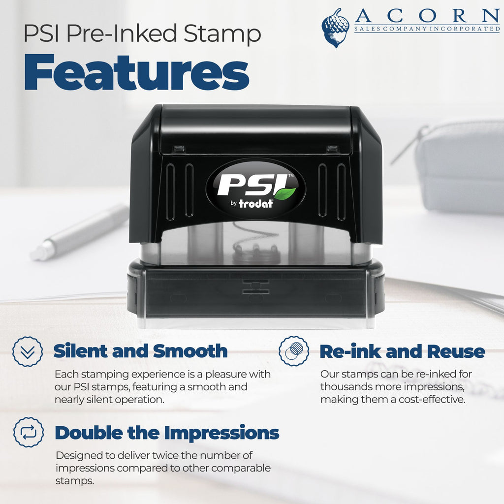 Designed with PSI Pre-Inked Stamps’ silent, smooth press mechanism, this stamp delivers clean, consistent impressions with almost no effort and no noisy distraction. The oil-based ink produces crisp, smudge-free results that dry instantly, so you can stamp with confidence at home, in the office, in classrooms, libraries, or during meetings. At 1-5/16" x 2-3/8", it’s the ideal size for marking personal libraries, decorating envelopes, labeling notebooks, or adding a fun finishing touch to cards and gift tags.