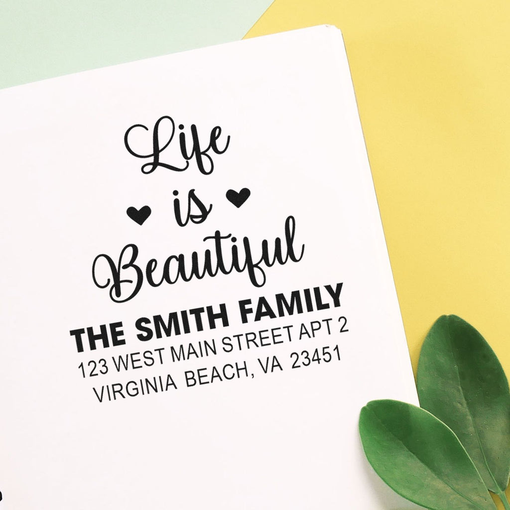 - ELEGANT STYLE: Featuring the uplifting “Life is Beautiful” script in a graceful flowing design, this 1-5/8" stamp adds a polished, personal touch that looks beautiful on notes, gifts, stationery, and business materials.
