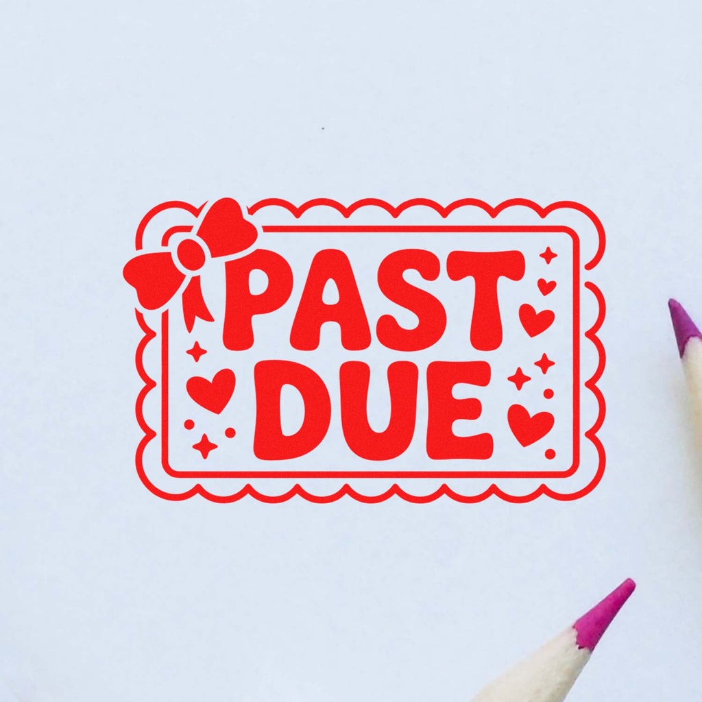 Ravish your packaging with the Belated Bakery Bliss Self-Inking Stamp—your instant, polished “belated” moment for gift tags, pastry boxes, bags, and cards. Featuring a bold black-and-white “PAST DUE” stamp-style design with a scalloped border, hearts, sparkles, and a sweet bow detail, it turns late pickups and delayed orders into a charming, consistent signature.