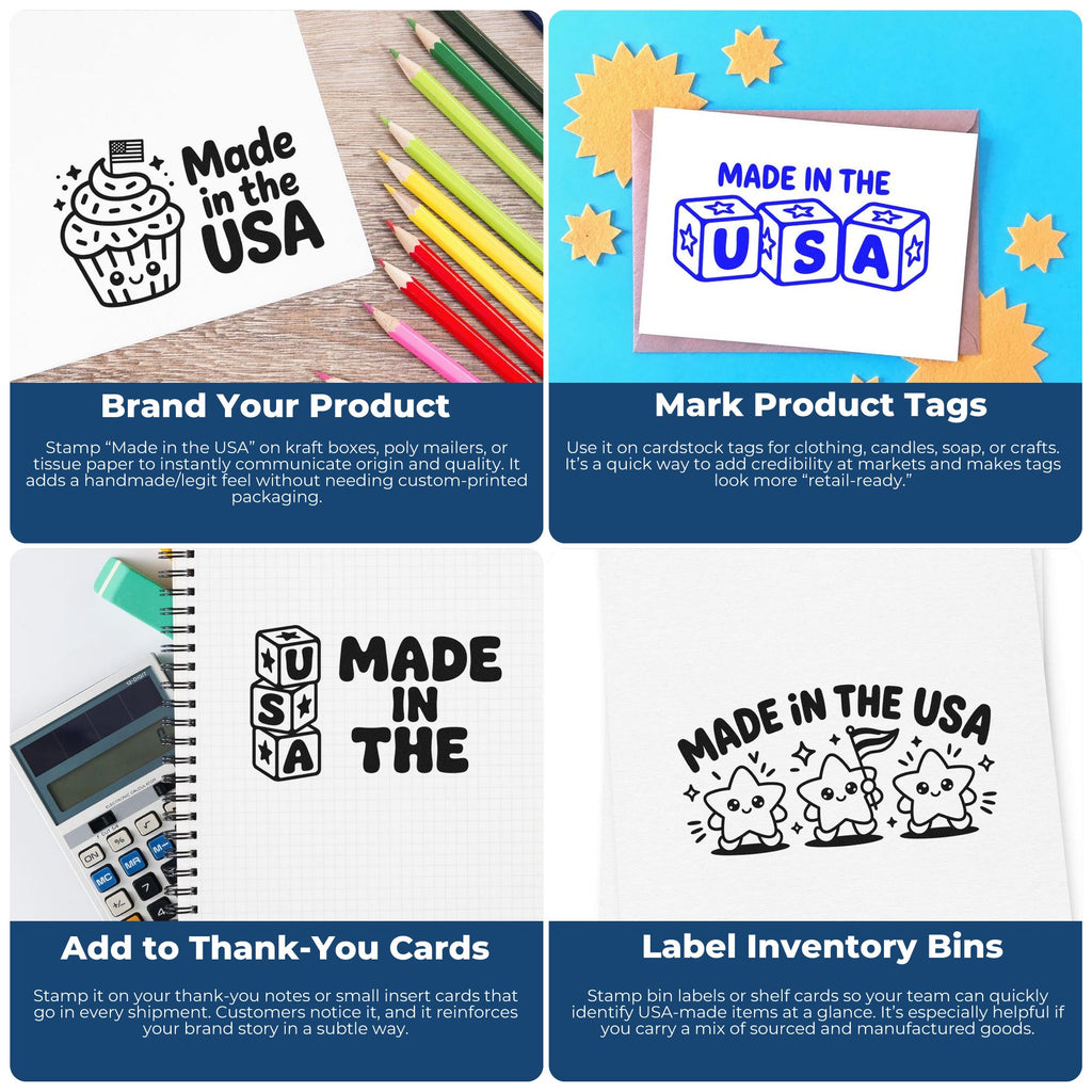 Featuring a bold “MADE IN THE USA” block-style design, this block trio labeling stamp is a smart, stylish essential for warehouse compliance officers and small-business shipping pros alike. Shop with Acorn Sales for premium quality, rapid turnaround, and dependable delivery—order today and get back to business with confidence.
