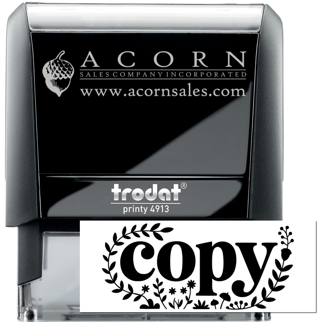 Gorgeous, crisp, and completely mess-free—meet the Blooming Copy Studio Self-Inking Stamp, designed to turn everyday labeling into a polished signature moment. With “copy” in bold black type, framed by a delicate leafy-floral wreath on a clean white background, it’s the chic little detail that makes your work look instantly intentional.