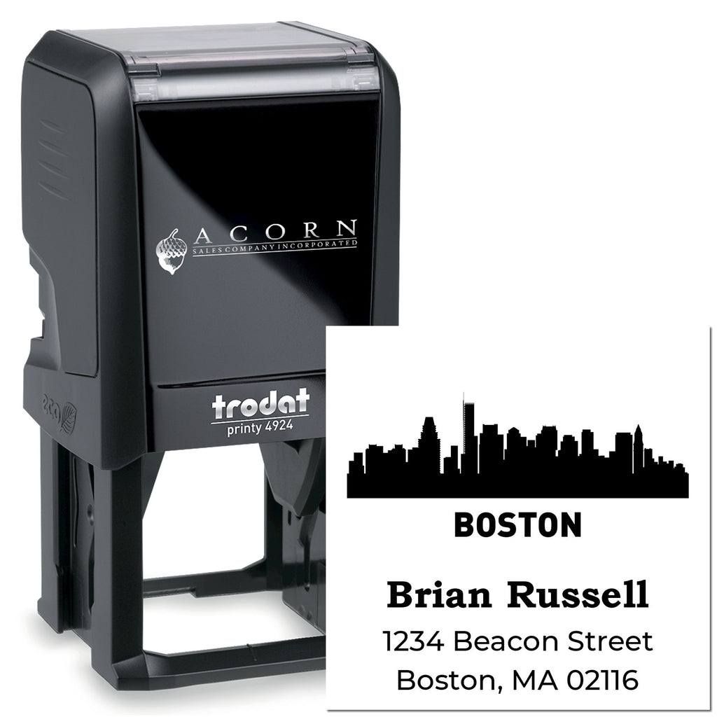Boston City Skyline Custom-Made Return Address Label Rubber Stamp Self-Inking Highlights and Features