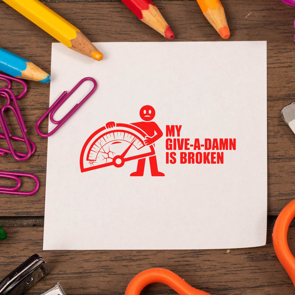 Amazingly direct and delightfully petty, the Broken Give Meter Sassy Self-Inking Stamp delivers your mood in one crisp press: “MY GIVE-A-DAMN IS BROKEN,” paired with a stick figure clutching a cracked gauge and a drooping needle. It’s the perfect punchline for paperwork, planners, sticky notes, and those “per my last email” moments.
