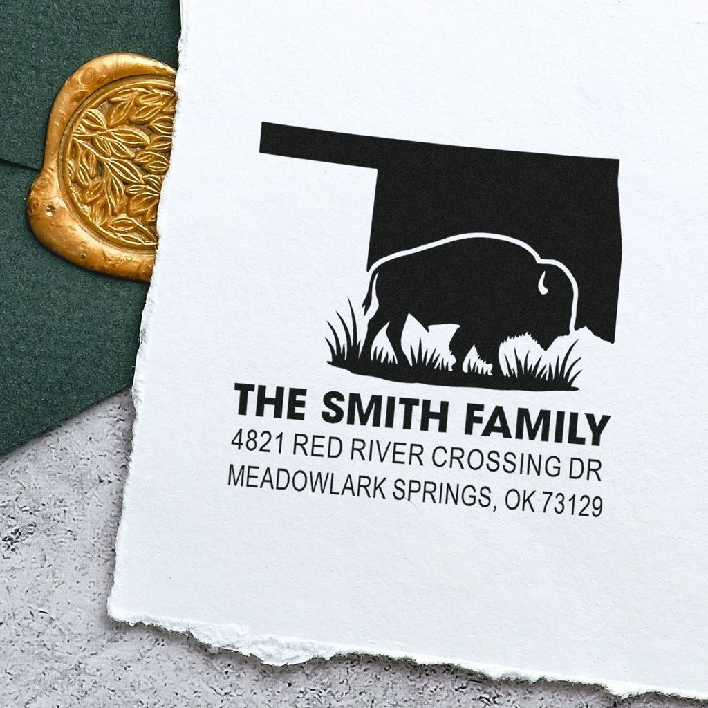 Buffalo State Silhouette Personalized Three-Line Custom Rubber Stamp, 1-5/8" Square, Slim Pre-Inked Handcrafted Stamp Highlights and Features
