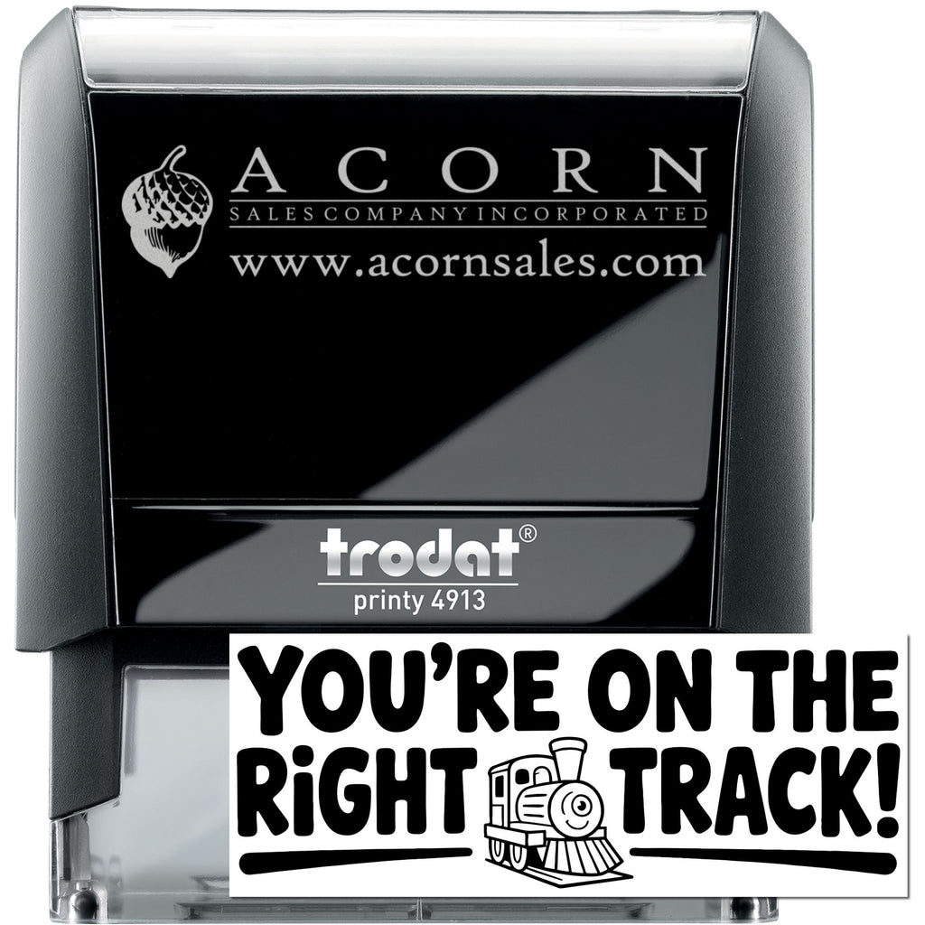 Classroom Reward On Right Track Self-Inking Stamp Highlights and Features