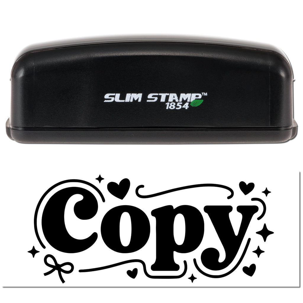 Crisp, cute, and instantly eye-catching—this Compact Playful Decorative “Copy” Pre-Inked Stamp turns routine paperwork into something you’ll actually smile about. Bold black “Copy” lettering plus charming swirls, hearts, and sparkles make every impression look polished, consistent, and delightfully fun.