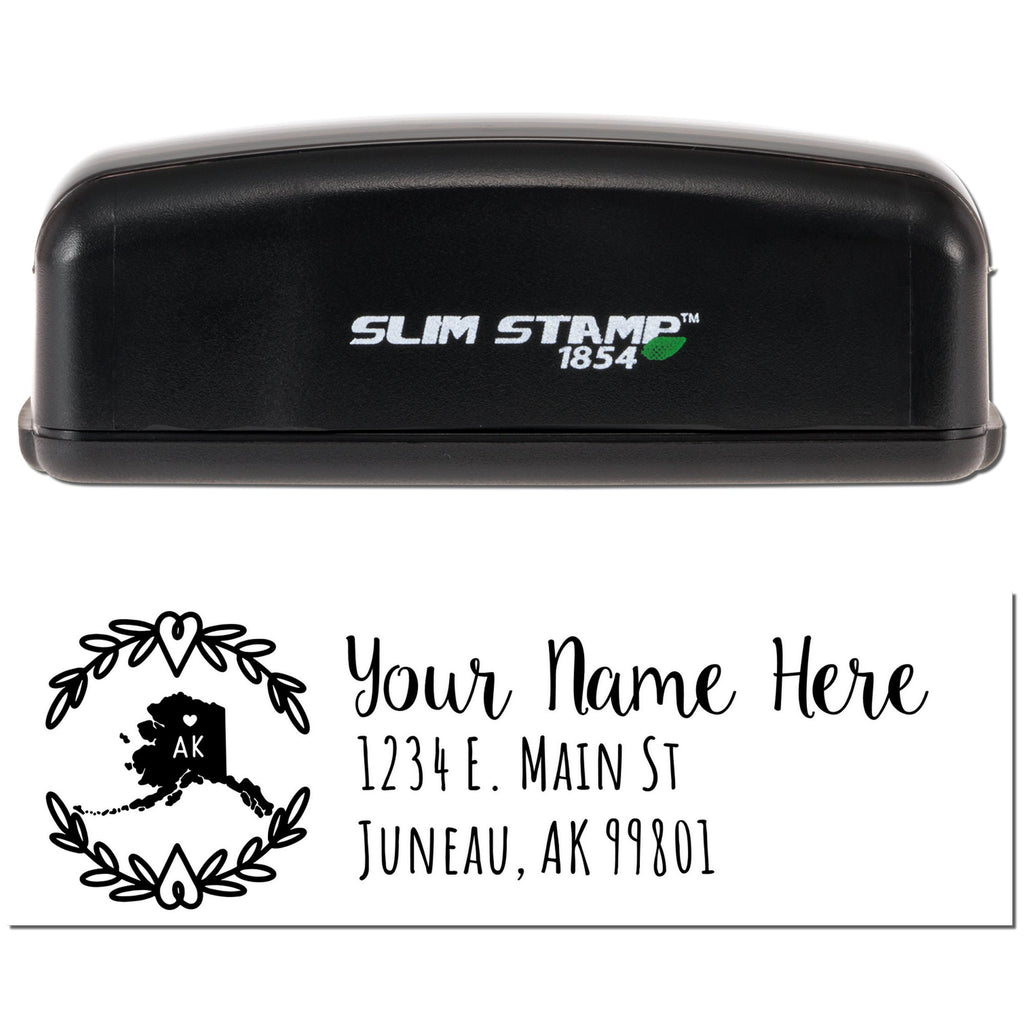 Custom Slim Alaska Pre-Inked Wreath Address Stamp Highlights and Features
