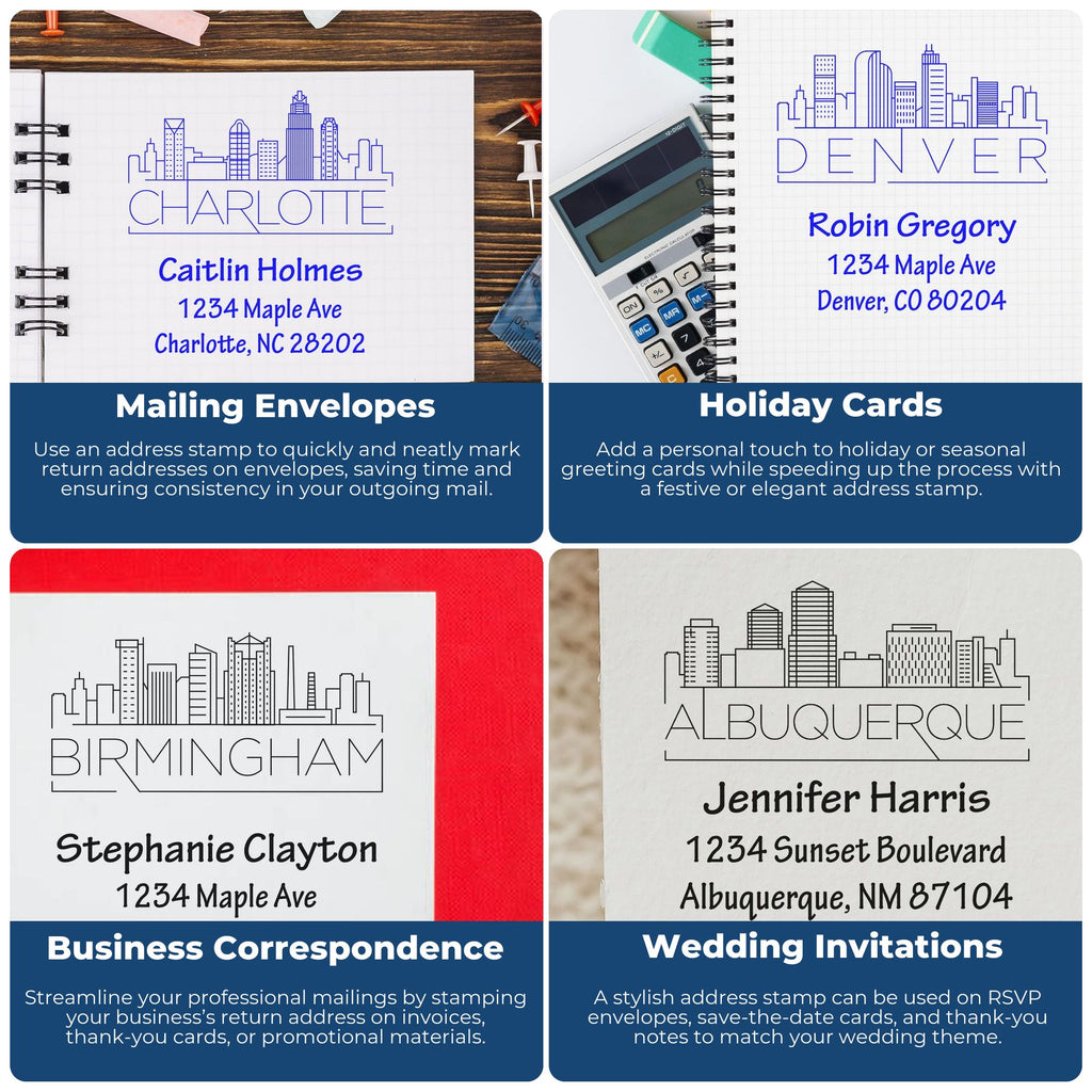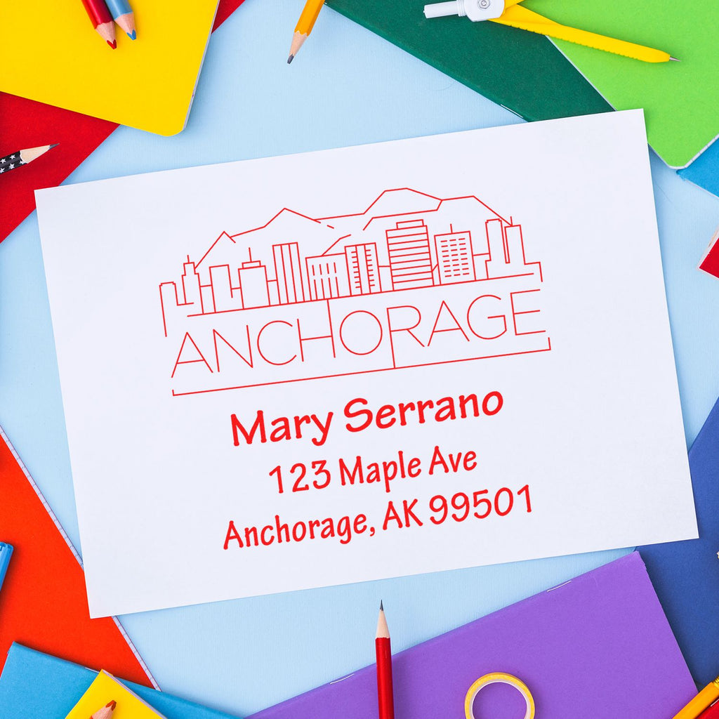 - Professional Branding: Create a polished, personalized impression with your custom three-line layout and Anchorage skyline design, ideal for adding a consistent, memorable touch to envelopes, letters, business cards, and packaging.