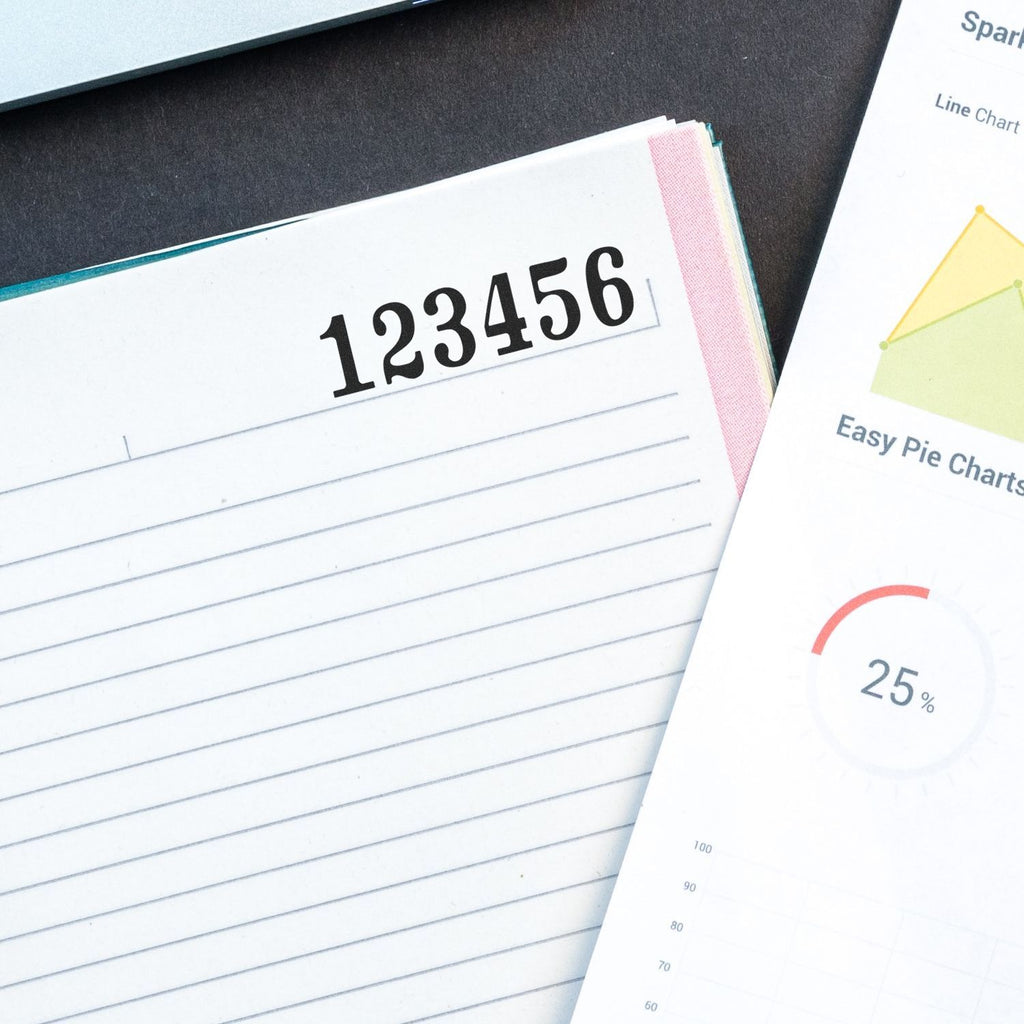 Automatic Numbering Stamps will make your life easier when you have many documents that need to be in sequential order. Our 20MB6-534 stamp is a 6-wheel Economy Numbering Machine. This light-duty B6 series Numbering machine has a strong, highly finished nickel-plated die-cast metal frame, smooth plastic handle, and special alloy wheels. In addition to producing thousands of impressions per day using a self-inking felt pad (red or black ink), this numbering machine has the drop zeros feature for blanking out leading zeros. With Roman characters 7/32" in size, the 20MB6-534 stamp provides multiple standard movements found on all Bates numbering stamps: repeat; consecutive; 2x, 3x, 4x, 5x, 6x, 12x, and 20x character advancement. Also included is a stylus to manually adjust wheel settings, if desired. Not sure which stamp will be the best fit for you? Please give us a call or send an email, we are happy to help.