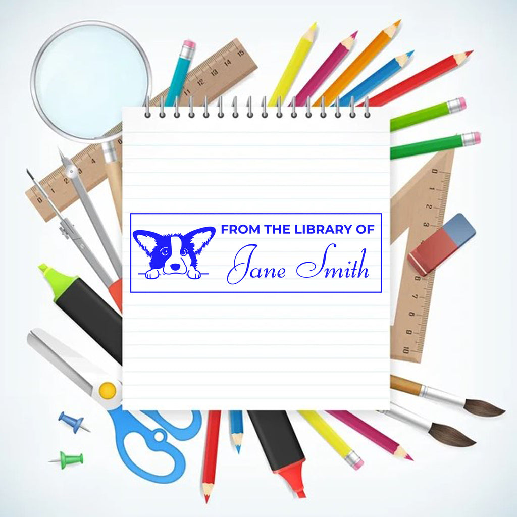 Personalized Cardigan Welsh Corgi Pre-Inked Library Peeking Puppy Stamp Highlights and Features