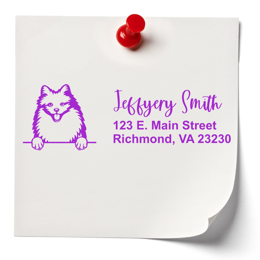 Stylish and irresistibly cute, this Personalized Slim American Eskimo Address Pre-Inked Stamp turns everyday mailing into a fast, polished, and personality-filled experience. Featuring a charming black silhouette of an American Eskimo Dog peeking over the edge, this compact stamp adds a playful touch that pet lovers will adore while making your return address look crisp, clean, and professional every time.