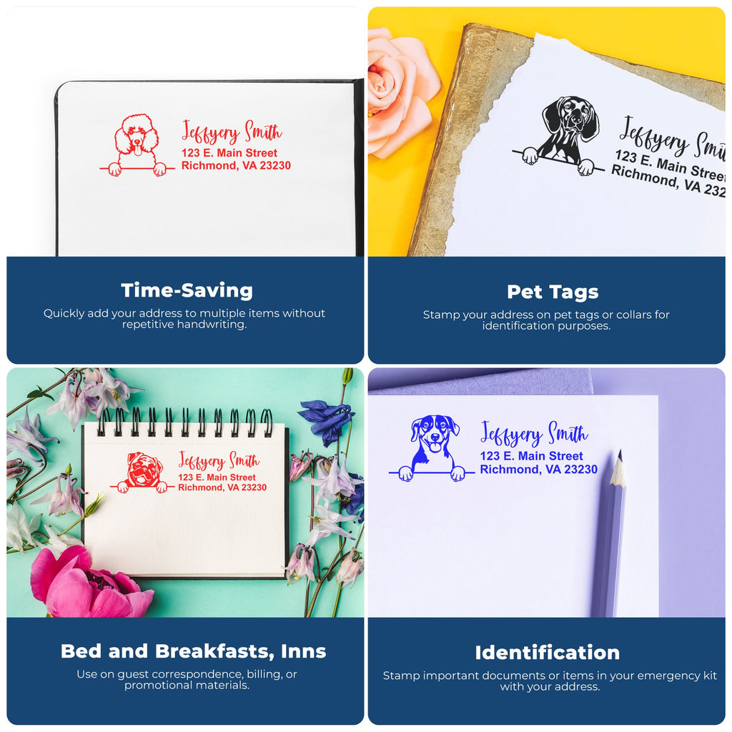 - Versatility: Use this 7/8" x 2-1/4" personalized address stamp for envelopes, packages, business mail, labels, and more, with a stylish dog-themed look that works beautifully for both personal and professional use.
