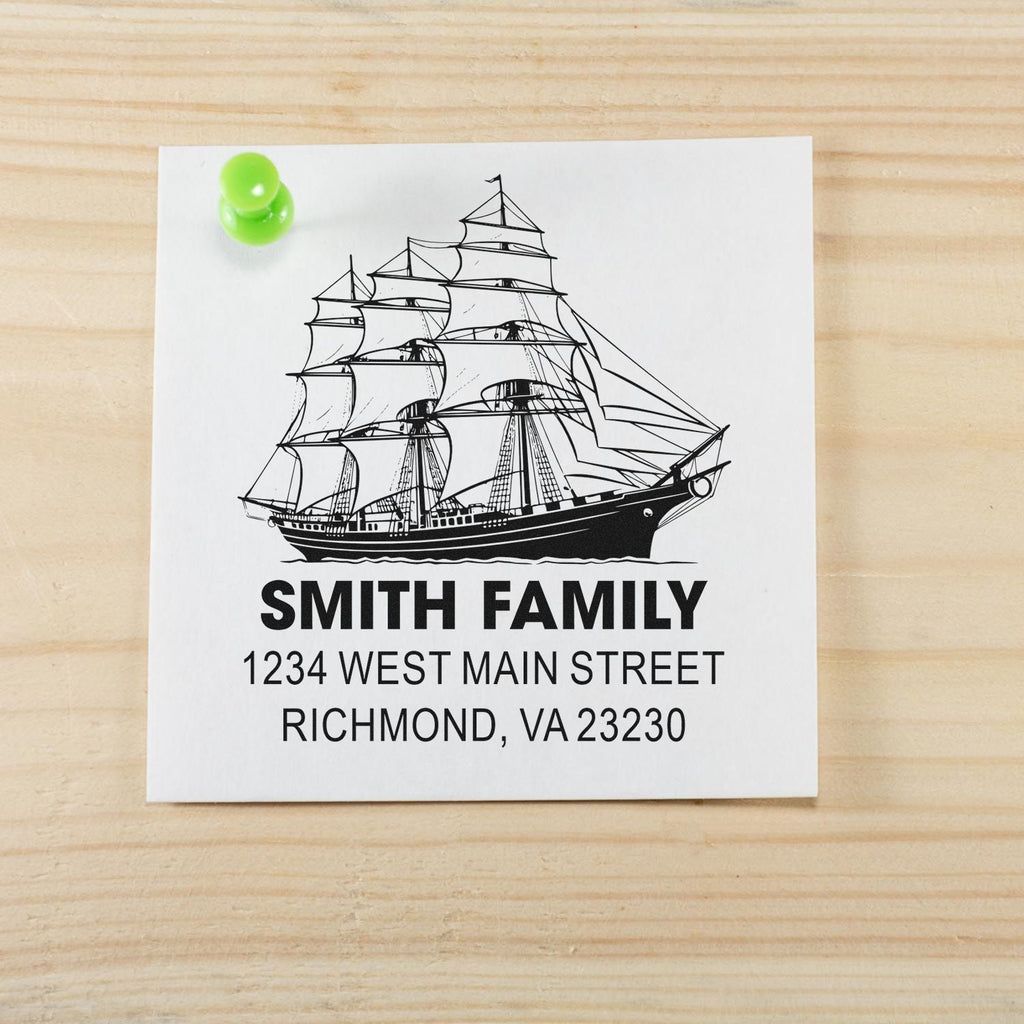 Exquisite black-and-white artwork of a classic sailing ship gives your correspondence a refined maritime flair, turning a simple return address into a standout detail. From invitations and holiday cards to care packages, personal stationery, and business mail, this custom return address stamp helps you stamp faster, cleaner, and with far more charm than handwriting ever could.