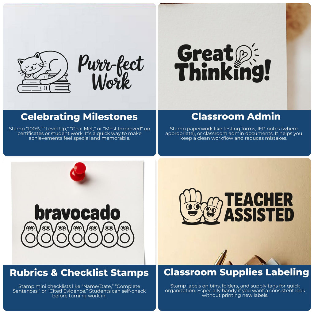 - Time-Saving Consistency: Stamp the same note in one clean press instead of rewriting it on every page, keeping grading fast, legible, and uniform. Perfect for teachers and homeschool parents who want polished results with minimal effort.