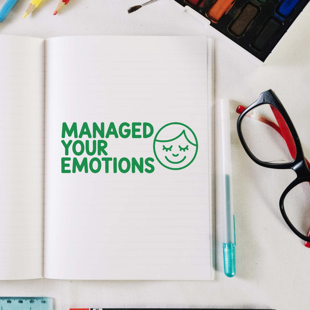 Kudos in a single stamp: the Teacher Feedback “Managed Your Emotions” Hand Stamp delivers instant, consistent praise that students can see and understand right away—no long notes needed. It’s a calm, confident message that turns self-control into a moment worth celebrating.