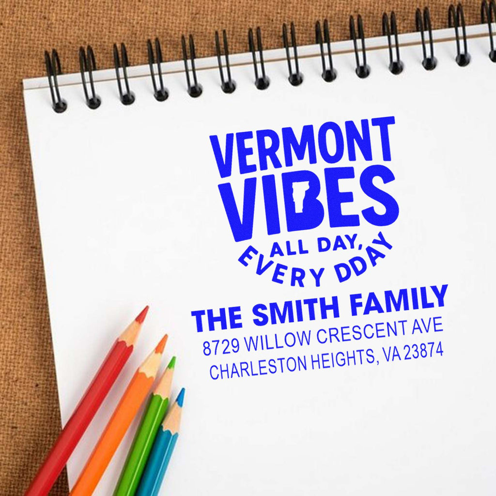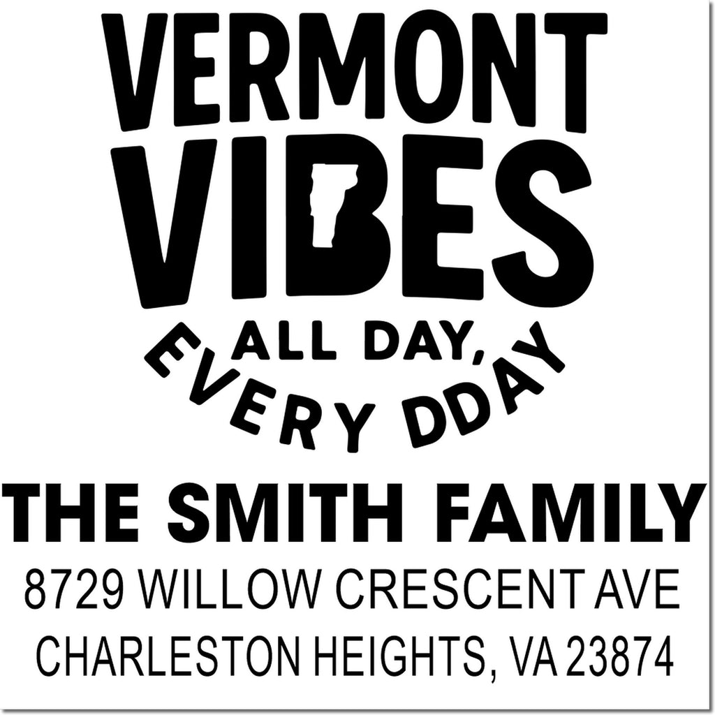 Vermont Vibes Rustic Personalized 3-Line Custom Rubber Pre-Inked Stamp Highlights and Features