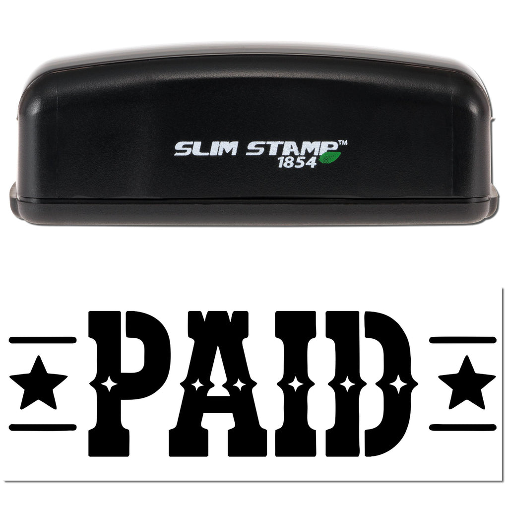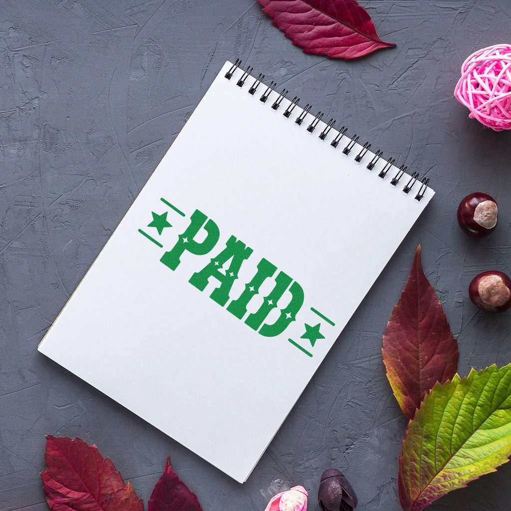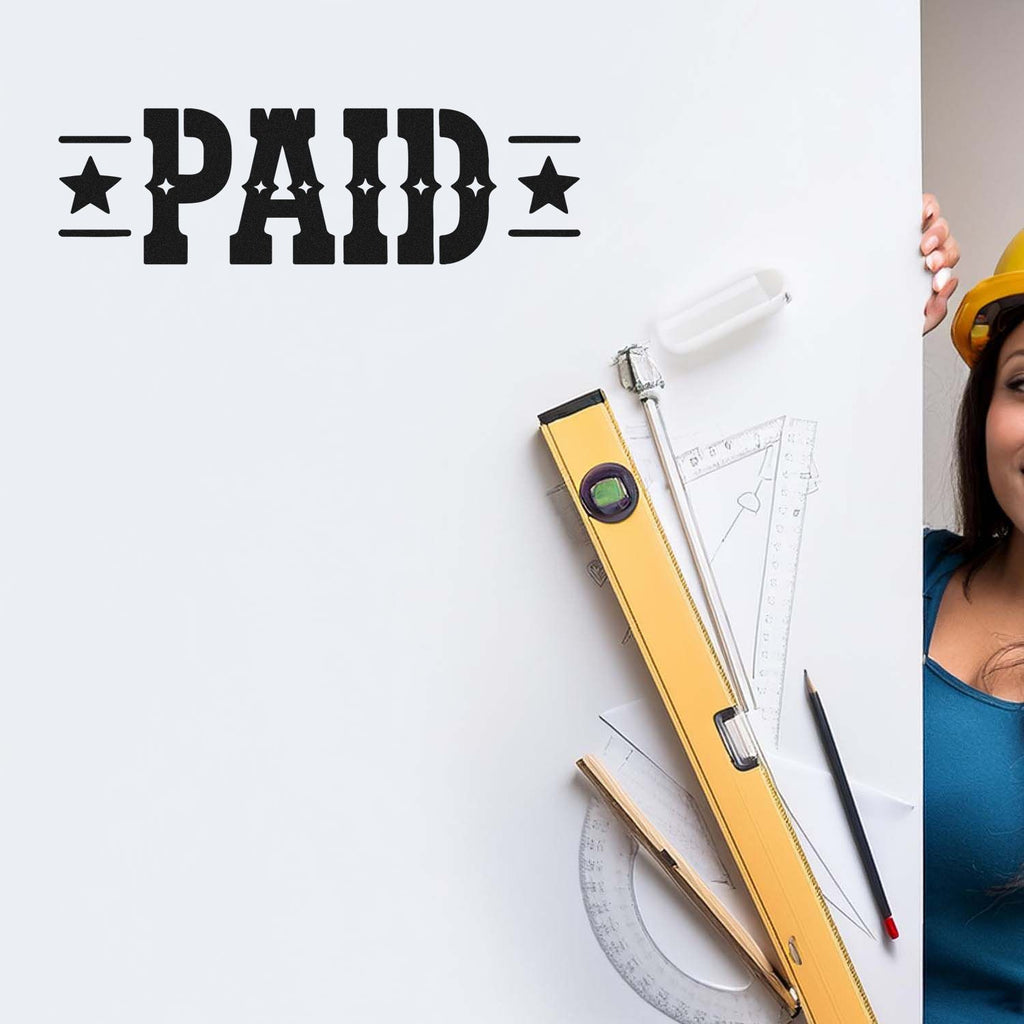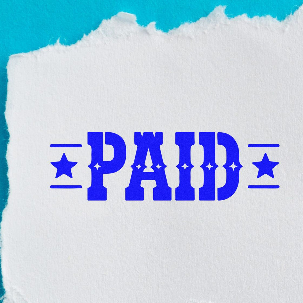 Make a bold statement with a classic Western look: PAID in big, bold lettering, framed by stars on both sides and clean horizontal lines for that confident, professional finish customers and auditors can spot instantly.