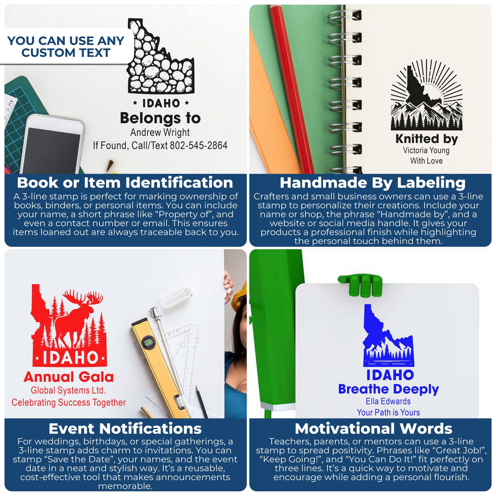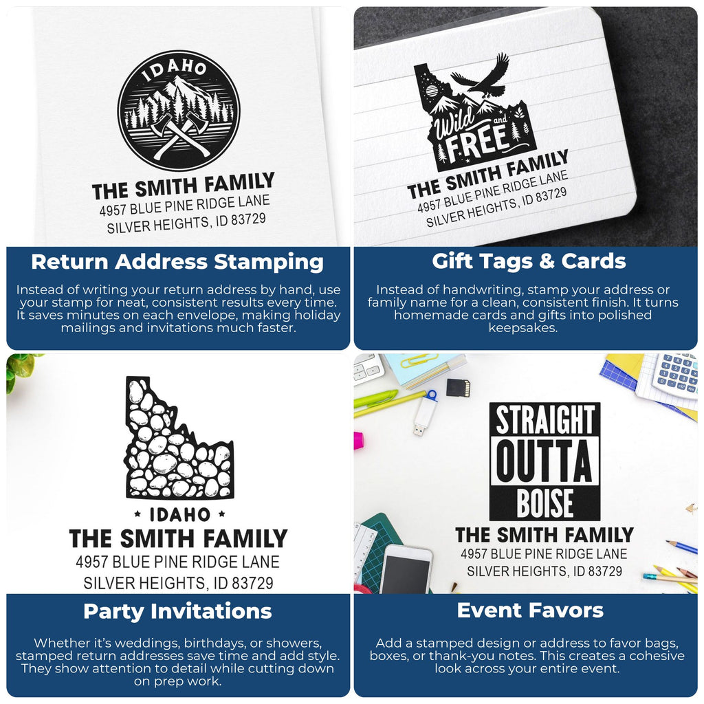 Wild Idaho Spirit Custom Rubber Pre-Inked Stamp – 1-5/8" Square , Personalized Craft Stamp for Crafters & Small Businesses Highlights and Features