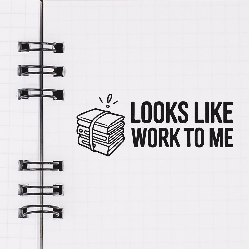 Featuring a bold black-and-white design of a strapped stack of papers with the phrase “Looks like work to me.”, this stamp delivers a clean, consistent impression in seconds—so you can keep documents moving while adding just the right dose of personality (when the moment is appropriate).